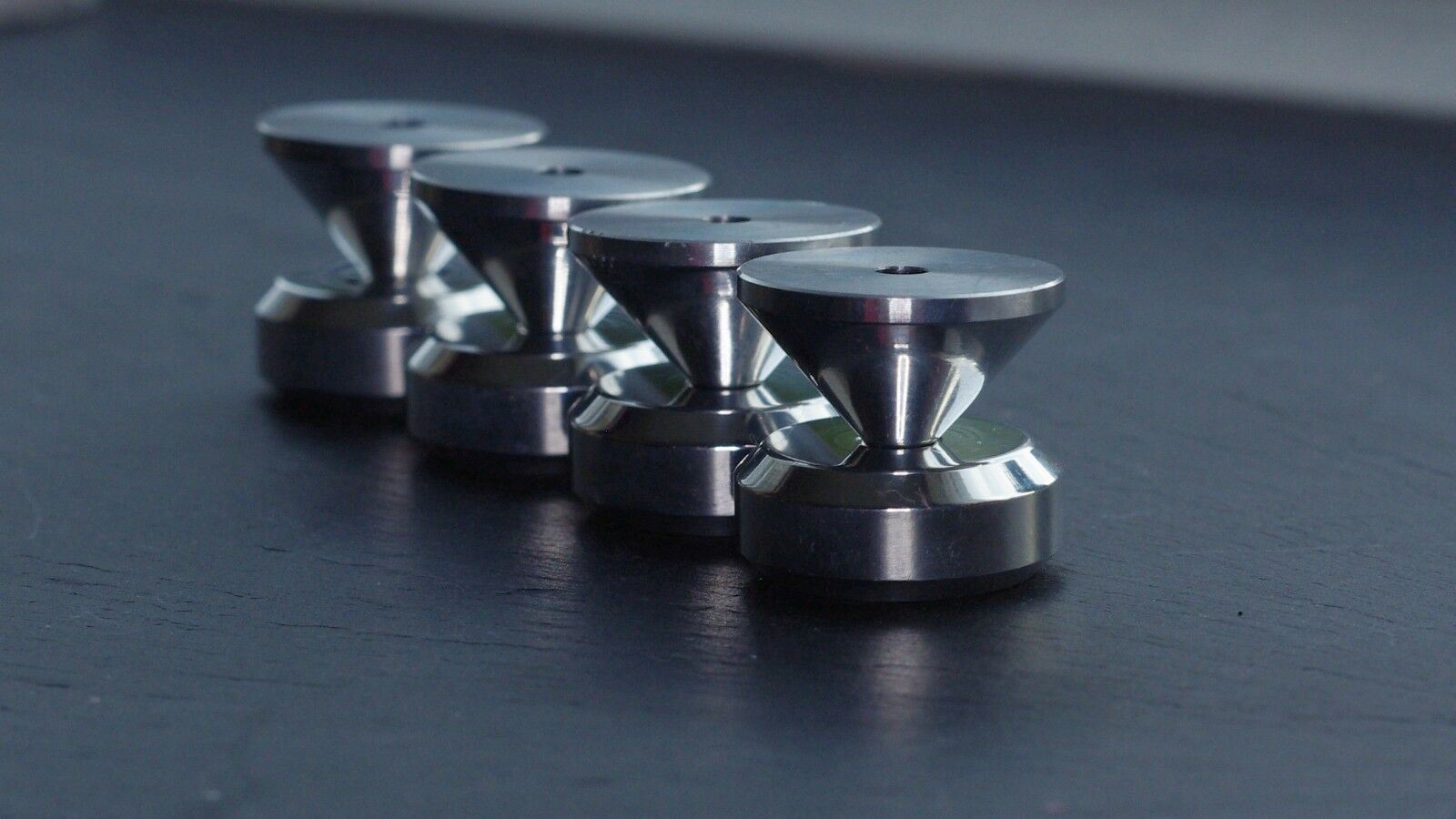 Set of 4pcs Solid Cone Speaker Spikes + Chamfered Spike Pads + Adhesive Pads
